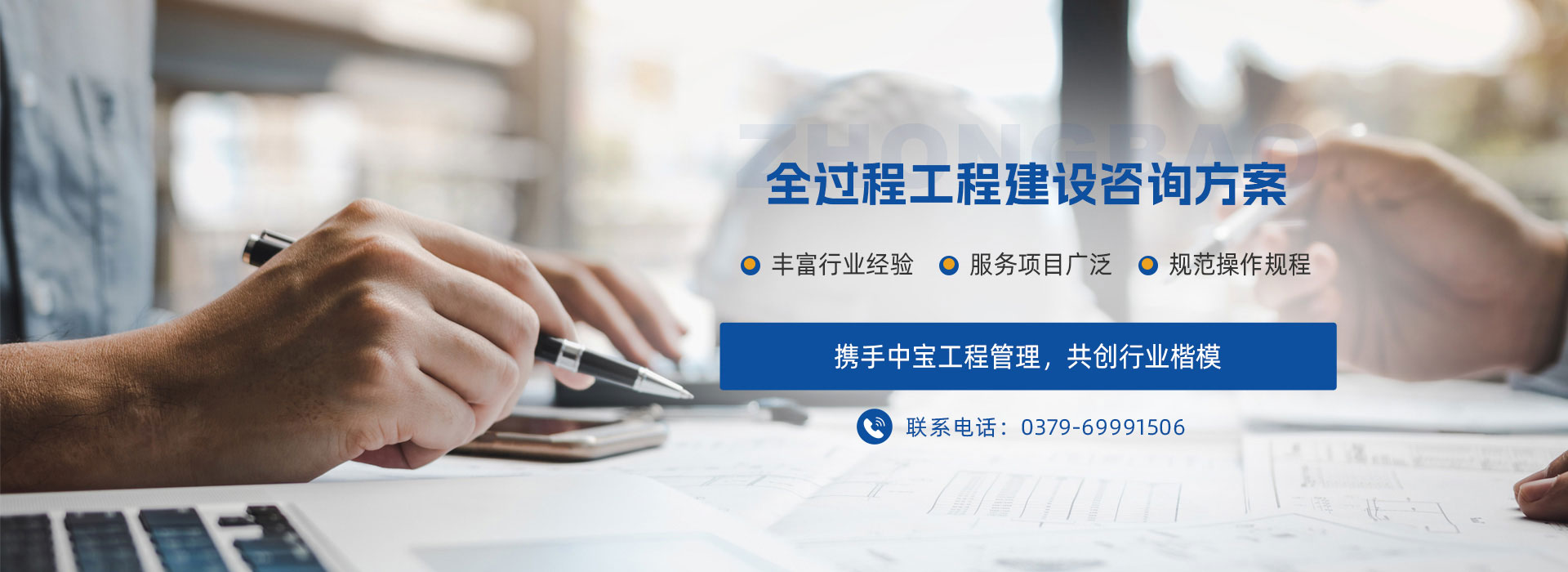 河南中寶工程管理服務有限公司是一個由十多位在工程咨詢服務及CPA行業有著多年工作經歷、豐富行業經驗、高素質人士于2009年開始籌劃運作凝聚而成的精英團隊,主要從事全過程工程咨詢、審計、工程造價、招標代理、資產評估、績效評價、可行性研究報告編制與評審、稅務咨詢與籌劃、政府和社會資本合作(PPP)項目咨詢與評審、政府專項債券全過程包裝咨詢、項目及建設項目全過程管理咨詢服務、工程設計、破產清算咨詢服務、課題及職稱服務等業務。2019年6月注冊,注冊資本為1018萬元,是集會計、審計、工程、評估、設計、招標、PPP項目、績效評價、政府專項債券、課題職稱為一體的綜合性鑒證機構及綜合性研發中心。公司注冊地址:河南省洛陽市洛龍區開元大道與關圣街交叉口怡和嘉園小區3號樓12樓1201室。是河南省全過程工程聯盟(河南省科技廳、河南省住建廳批準的全過程工程咨詢機構)常務理事單位,是洛陽技術研究院發起單位。協助洛陽技術研究院打造全過程聯盟洛陽技術研究院工程咨詢行業“六大平臺”:業務技術交流平臺、業務信息共享平臺、業務互助合作平臺、服務能力提升平臺、執業職稱促進平臺、科學技術研究平臺。  公司現有員工56人,全部為大學專科以上學歷,其中,本科及以上學歷占75%;中級、高級職稱人員占50%;擁有注冊執業資格證書人員占45%。公司有穩定的服務團隊和專家指導團隊,有河南省財政  廳及洛陽市財政評審專家5人,河南省財政廳績效評價入庫專家2人,河南省財政廳土地整治(理)評審專家1人,河南省財政廳高級會計師評審專家庫成員1人,河南省綜合評標專家庫專家1人,河南省審計廳外聘審計專家庫專家1人,河南省財政廳政府和社會資本合作(PPP)專家1人。  公司始終注重加強內部治理。按照國家法律法規和行業規范,先后制訂了《業務質量控制及監督檢查機制》、《業務質量責任追究與賠償機制》、《采購代理業務內部監督管理辦法》、《項目管理責任制》、《重大風險事項報告制度》、《緊急預案和糾偏方案》、《保密工作條例》、《檔案管理制度》、《員工行為規范》等近20項規章制度,以樹立企業理念,規范操作規程,嚴格質量把控,強化責任擔當。  公司實行信息化管理。辦公設備自動化程度高、設備齊全;建立了信息管理系統、資料管理系統、質量管理系統,能夠全方面、快捷、準確的完成各種項目管理及相關咨詢業務,促使各工作流程、組織措施、技術措施、管理措施等相互促進,協調發展,極大地提高了工作效率,為業主項目的順利進展提供了可靠保障。
